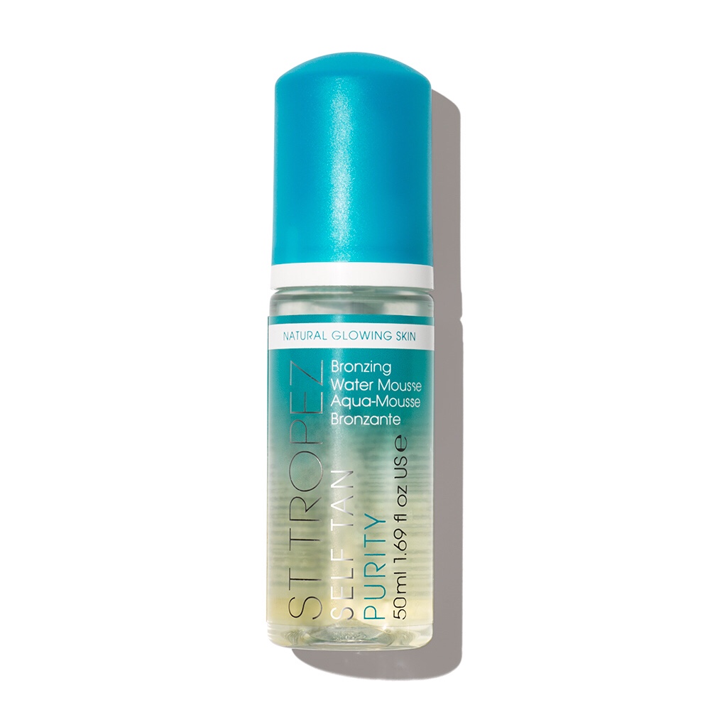 It looks like water and is completely clear. However, it becomes a mousse in your hand and becomes an easy to spread self tanner that does not need to be rinsed off. A sure bronzing,mess free application.