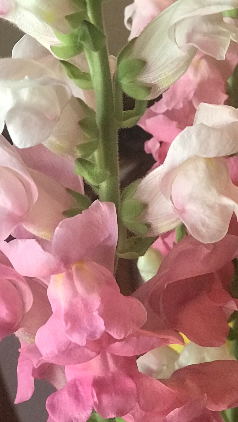 Most would not think that Gladiolas could take center stage but they can. I thought these pink and white Gladiolas were beautiful and they were absolutely gorgeous in a simple tall crystal vase.