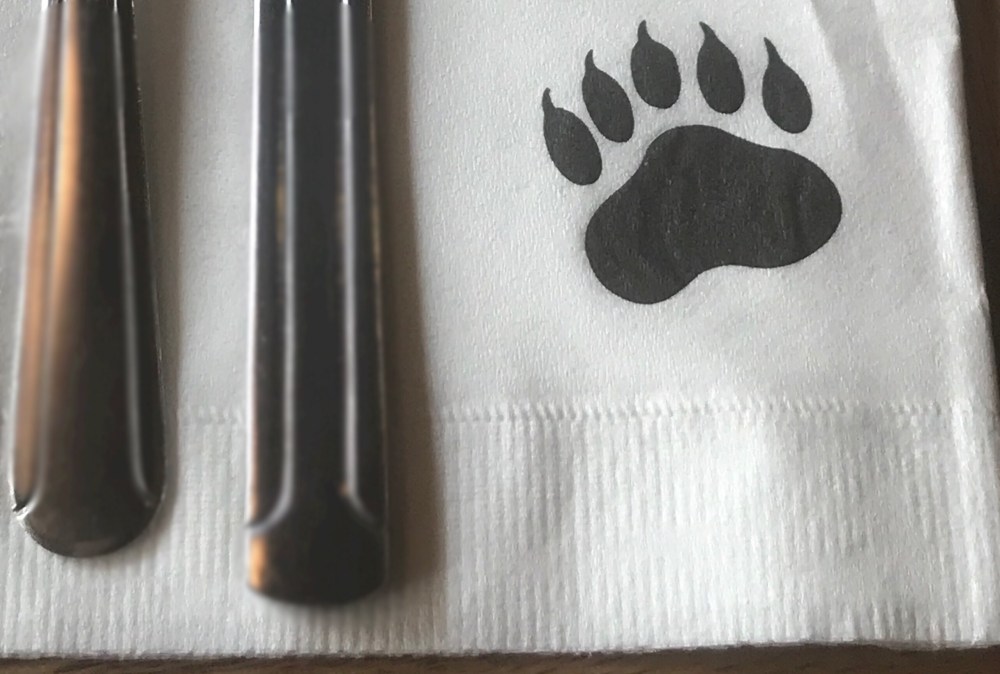 I look around a restaurant and pretty much notice everything. At the Black Bear Diner restaurant these napkins included a paw print, the curtains had a row of black bears and the menu was in the form of a newspaper. ☺️