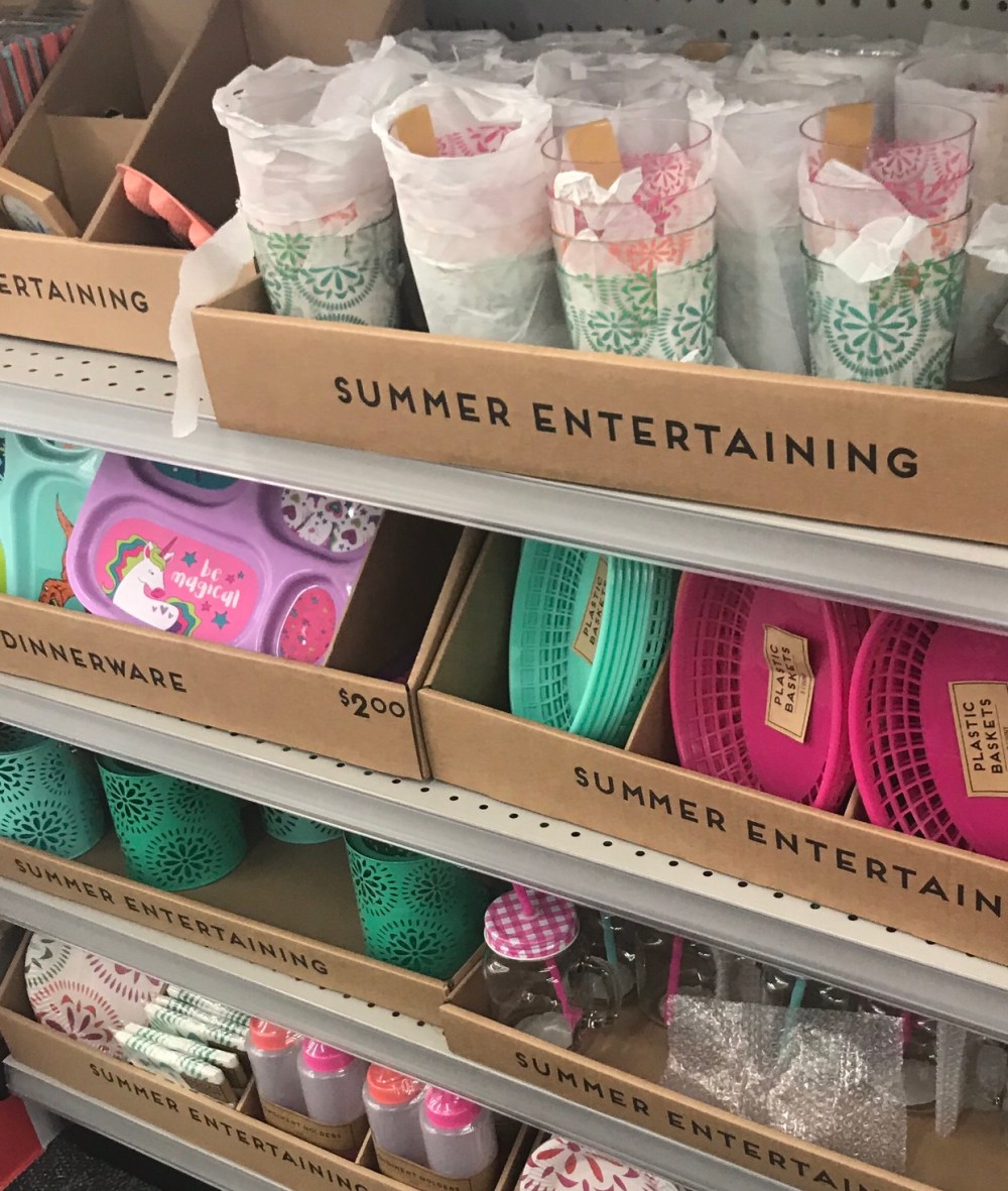 I wrote an earlier post about finding this section at CVS in the prime of the sweltering summer. I picked out a few items that were perfect for small summer soirée’s that could keep your mind at ease if you don’t want to store them for next year or if you need something kid friendly. These cute little plastic cups are perfect for holding a summer drink.