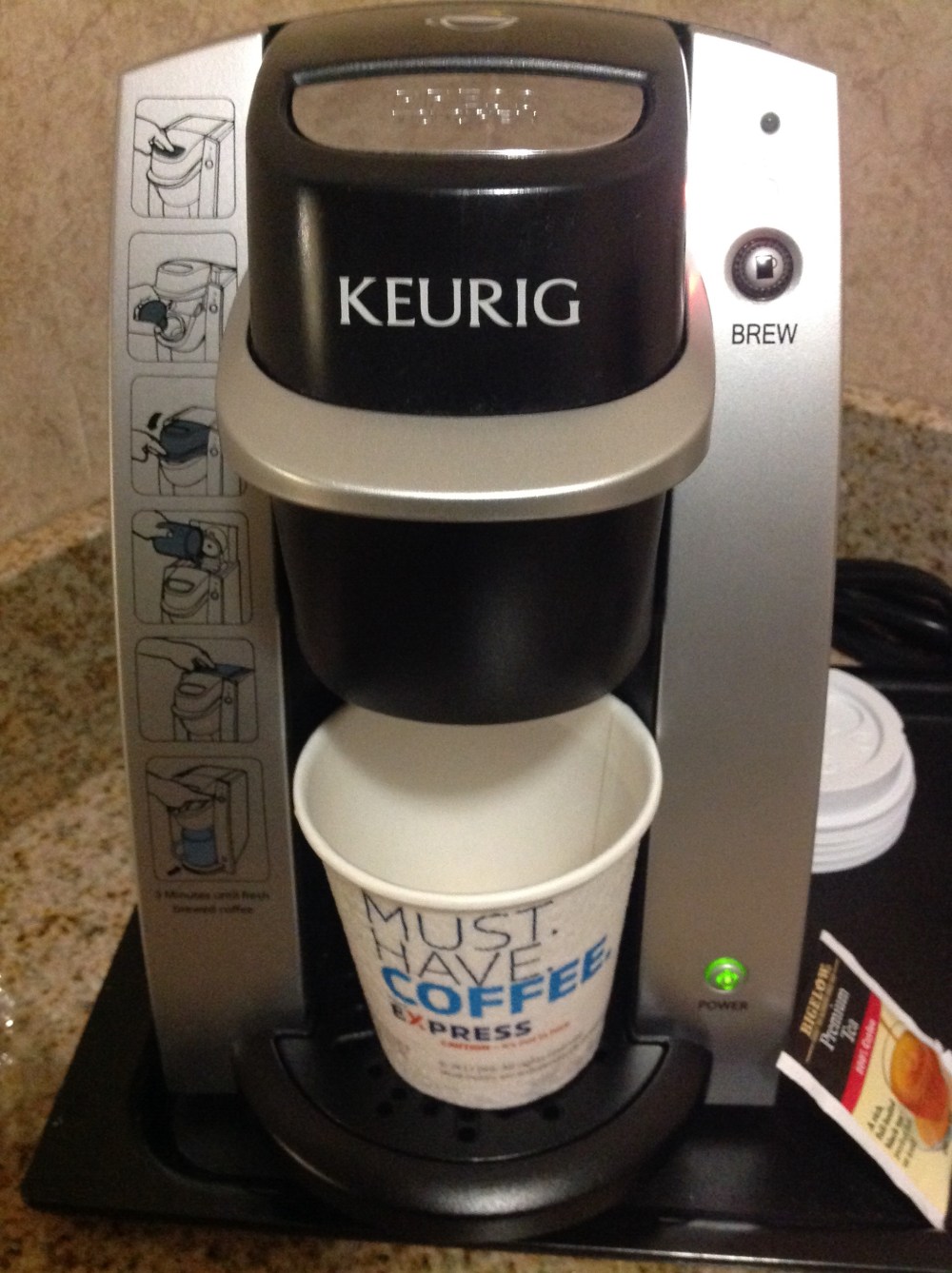 Thankfully our hotel had a handy Keurig. Early morning coffee a must have and they also had the choice of having fresh brewed tea.