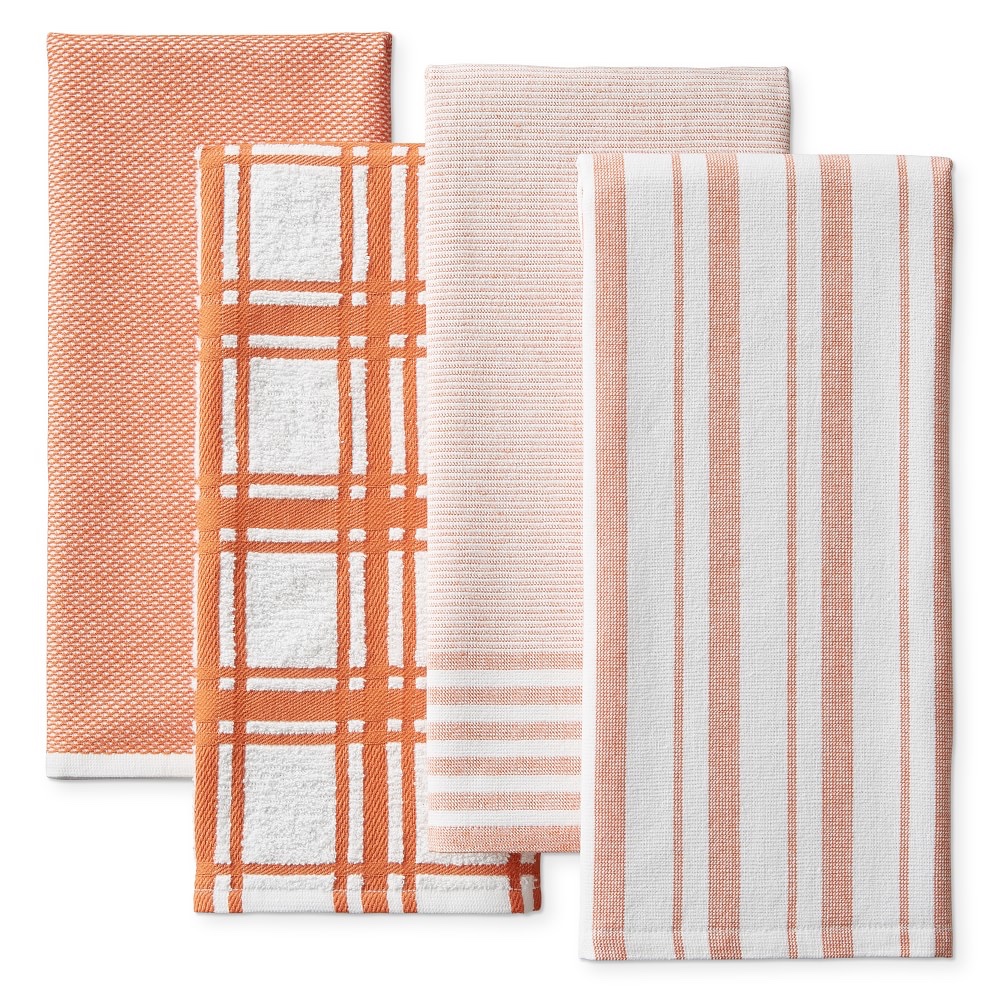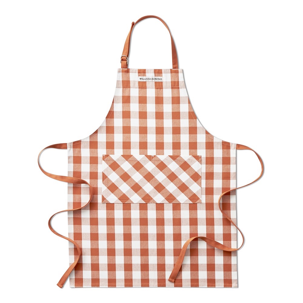 All in the holiday spirit and perfect for your fall kitchen, these William-Sonoma apron, kitchen mitt, potholder set, silicone spatulas and multi-pack absorbent towels all in pumpkin orange. 🎃