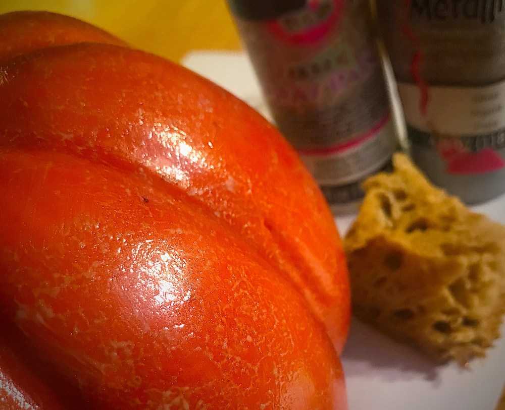 With my smaller traditional pumpkins I used a decoupage technique to give it a subtle shine with glitter sparkles. I opted to use a little metallic paint and silver glitter glue which when dried gave it a shiny, silver finish. 🍂🍁
