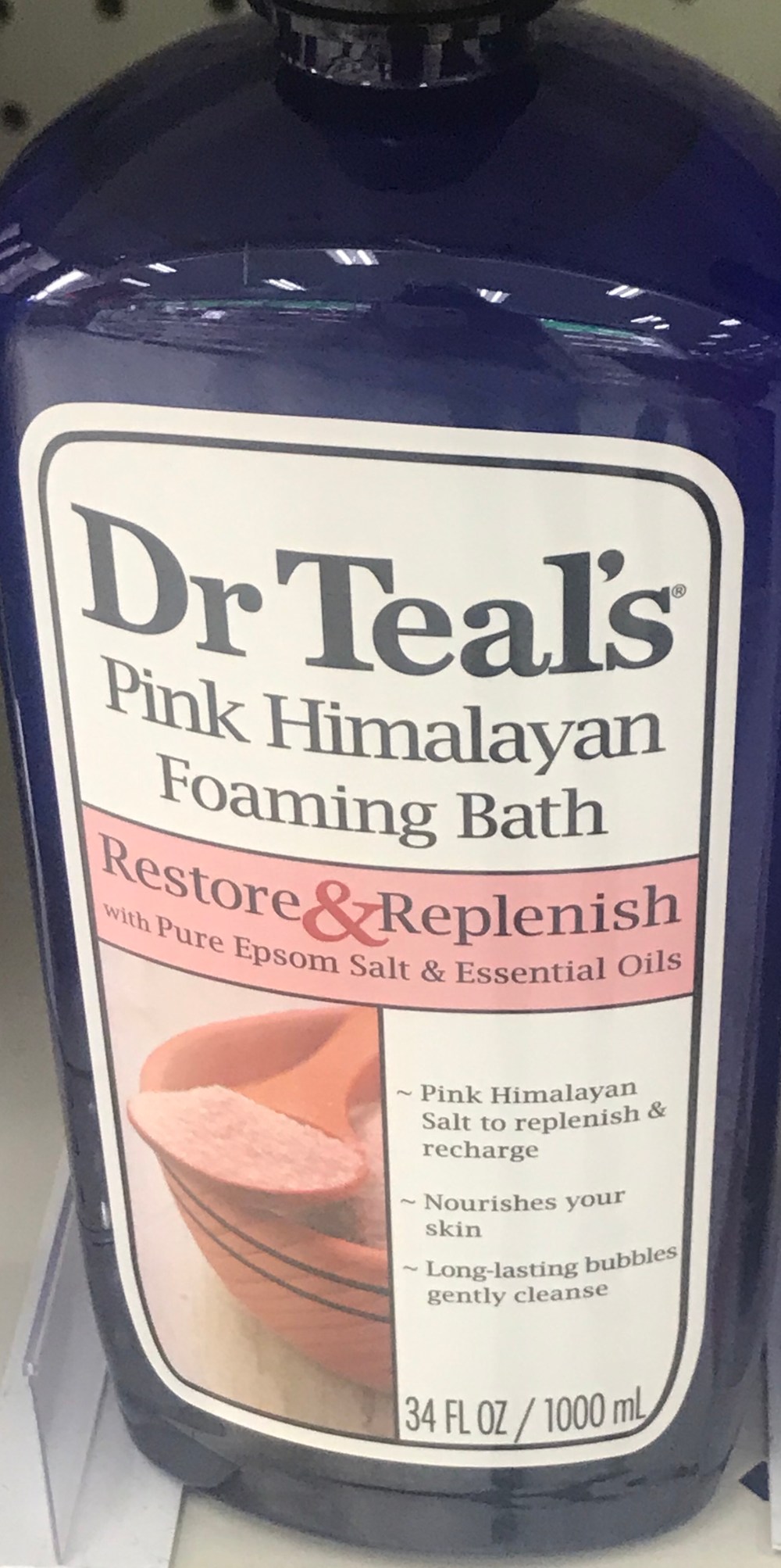 There are lots of references to pink Himalayan salt these days, it’s origins and it’s benefits. This test of what it does comes in the form of Dr. Teals Pink Himalayan Foaming Bath. Nourishes the skin with long lasting bubbles and pink Himalayan salt replenishes and recharges. Available at target.com.