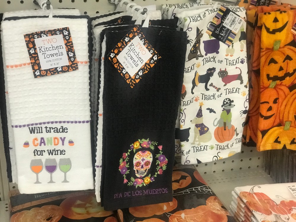 Kitchen towels, pot holders etc. all would give your Halloween decor theme an added bonus with a jack o lantern or two. These Halloween themed kitchen towels are the perfect accompaniment to a seasonal inspired decor. 💡🎃