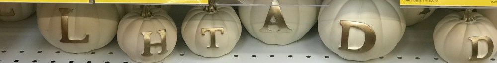 Just a small section in an actual grocery store which has fall fare at a discount. But wait, those pumpkins with gold letters are worth mentioning. ✔️