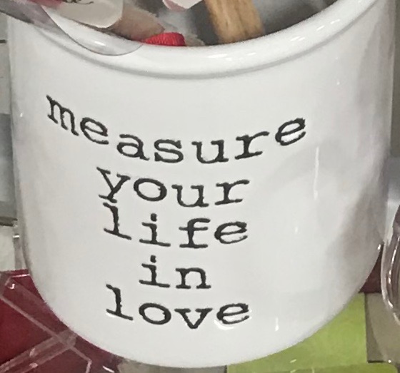 Posted on February 13, 2020 by KreateandWryte A baking Valentine’s Day saying: “Measure Your Life in Love”. 🌹 Share this: Click to share on X (Opens in new window) X Click to share on Facebook (Opens in new window) Facebook Like Loading...