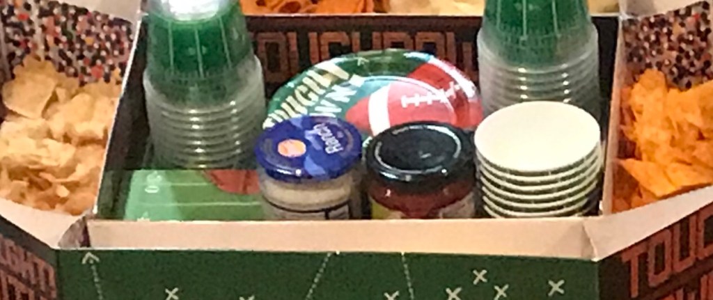 The Super Bowl this year and every year never ceases to delight a football loving crowd. How easy is it to appease an always hungry crowd of super bowl watchers. This simple and easy to set up snack stadium included plenty of room for several different chips, dips and serveware. This made it easy to feature much appreciated snacks for all. ππ