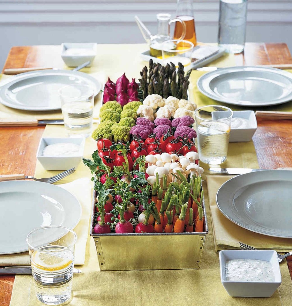 When healthy eating is the focus. A centerpiece created entirely of edible vegetables is a wonderful idea. Colorful and beautiful vegetables, all edible and a pick away from a nice place setting and single servings of dip. π‘