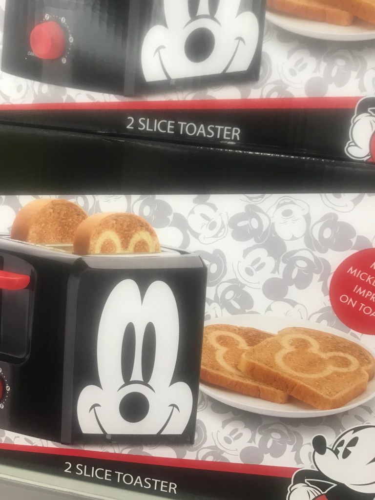 Another great way to start the day. A Mickey Mouse toaster that is perfect for the family. A smile that makes the day along with breakfast.