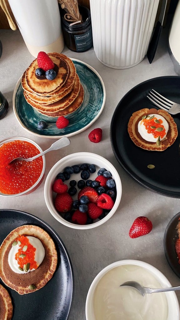 What exactly do you classify as comfort food? Food that gives you a sense of home. That means food that reminds you of days past, memorable days, memorable recipes and just great food that makes you feel comfortable. That means pancakes with fruit within or added to the top, along with a dollop of whip-cream can constitute as comfort food. I decided during the time of cooking at home more than not, a recipe that included baking powder, flour, granulated sugar, butter and eggs could not have been more of an opportunity for me to make my own version of comfort food. I literally went for a recipe that reminded me of coming home after a long day of being outside, wether riding my bike or going to the neighborhood park. I would return home to a wonderful smell that made me ask what is exactly cooking? I knew it was either homemade cake, cookies or some sort of bread.
