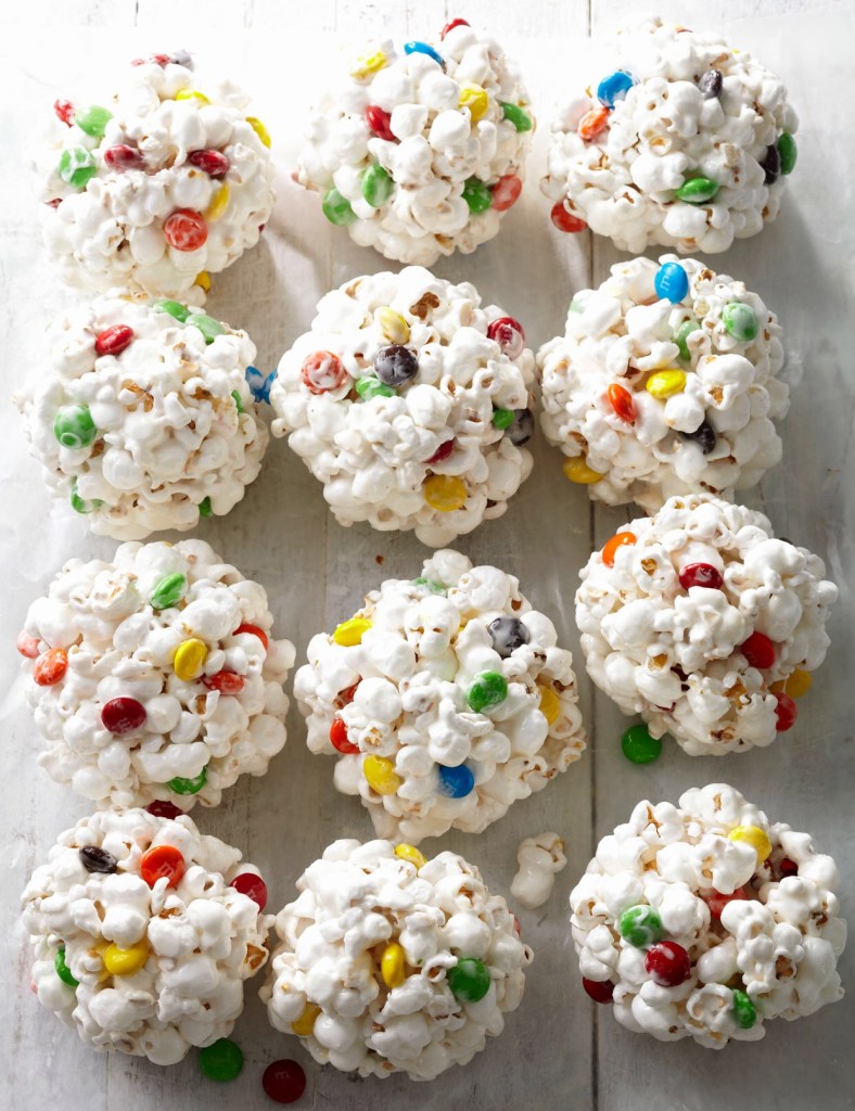Halloween of days past included this must have, popcorn balls containing candy, caramel or some other sweet treat. The following recipe gives you a bit of nostalgia for this upcoming Halloween. For more of a Halloween theme, use Halloween themed gift bags. bhg.com.